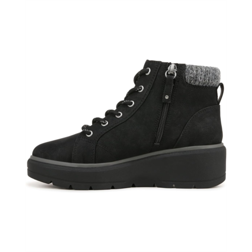 Comfortable and durable, the Dr. Scholl's Nice Day Max Alpine boots feature a faux fur collar that keeps your feet warm and cozy. The partially recycled wool blend upper of these boots comes with a lace-up closure for a secure fit. These ankle boots are made of a 15% cushy plant-based BLOOM foam insole with Insole technology that delivers cushioning, comfort, and support. The fabric linings, topcloth, toe box, and heel counter are partially made from recycled plastic bottles. Get ready for the cold weather wearing these lace-up boots.