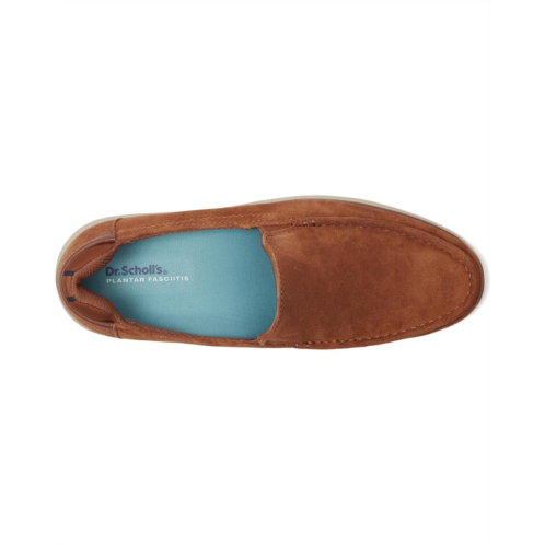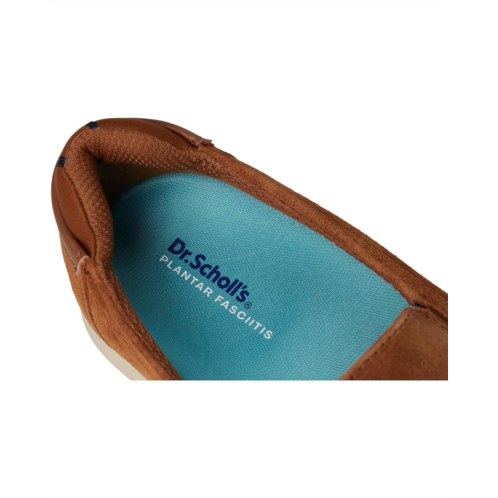 The Dr. Scholl's Feel Engaged shoes are plantar fasciitis shoes for men with podiatrist-recommended, clinically proven pain relief insole technology in must-have loafers. Their scientifically engineered insole with Shock Guard technology and cushioning heel cup absorbs shock and reduces heel pressure while the 20% plant-based BLOOM foam layer under the insole offers cushioning, comfort, and arch support. These slip-on loafers are made of a leather upper and polyester lining. The fabric lining, fabric topcloth, toe box, and toe counter are partially made from recycled materials. Their supportive arch reduces overstretching of plantar fascia, allowing it to heal and the lightweight and flexible construction with flex grooves moves with you. These leather shoes are clinically proven to relieve heel pain immediately and to help prevent heel pain from returning. They are designed with a padded collar, stitch detailing, comfortable EVA drop-in midsole, and a sport synthetic rubber outsole.