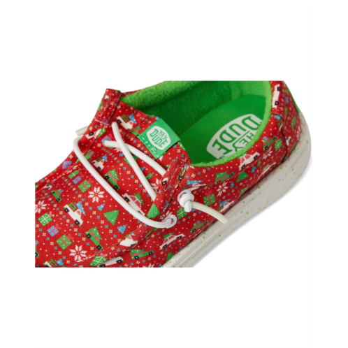 The Hey Dude Kids Wally Holiday Sweater brings festive flair and all-day comfort to your little one's adventures. Designed with a soft canvas upper and cotton lining, this sneaker keeps feet feeling cozy and breathable from morning playdates to evening strolls. The easy-on elastic laces and pull-on style make getting ready a breeze, no tying, no fuss, just slip and go! A lightweight EVA outsole and removable cushioned insole deliver that signature Hey Dude bounce and flexibility, perfect for exploring in comfort.