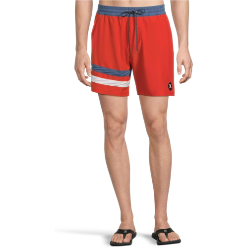 The Hurley Phantom Eco Block Party Vlly 17' shorts are made from Phantom stretch fabric with DWR coating that provides mobility and quick drying. Designed in a straight-leg silhouette, these pull-on shorts feature block party stripes. Their elasticized waistband with a drawcord offers a snug fit, while the Phantom heat transfer logo and icon patch give them a signature look.