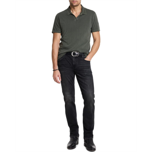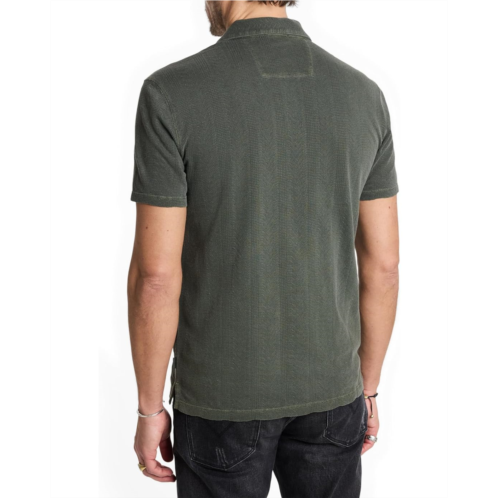 Designed with vertical texture patterns and overdyed process, the John Varvatos Zion Polo K6171F24 offers a breathable feel in a regular fit silhouette. It features a collared V-neckline, short sleeves, open front placket, and straight hem with side symmetrical vents.