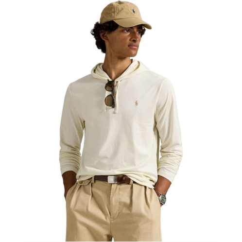 The Polo Ralph Lauren Jersey Hooded T-Shirt is constructed of cotton and features a drawstring hood on a long sleeved tee for a soft and comfortable shirt.