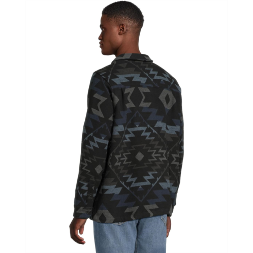 The Hurley Santa Cruz Jacquard Long Sleeve Shacket features a geometric pattern allover and an icon faux leather patch for a hit of texture. Made from cotton jacquard fabric, it also has a smooth poplin lining for added comfort. The buttoned front closure with recycled polyester buttons ensures easy wear. This patterned shirt is styled with long sleeves, buttoned cuffs, a collared neckline, and a straight hem. Its back yoke pleats ensure mobility. This button-down shirt makes a great addition to your wardrobe.