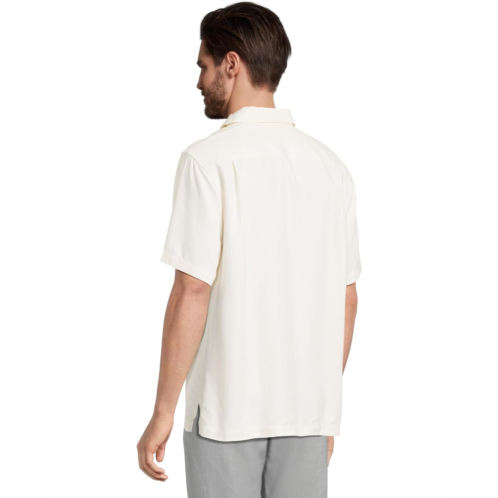 From lounging in the backyard to casual days beachside, the Tommy Bahama Maui Border shirt is a must-have essential! Crafted from luxurious silk, this shirt offers a spread collar with a front button closure, short sleeves and jacquard detailing in front.
