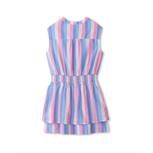 Featuring a colorful vertical striped pattern all over, the Hatley Kids Evening Sky Smocked Waist Dress makes a stylish addition to your kid's summer collection. Crafted from cotton fabric, this striped dress keeps your kid cool and comfortable all day. The buttoned closure at the front offers easy wear. Perfect for parties and events, this sleeveless dress features smocked detailing at the waist for a stylish appeal.