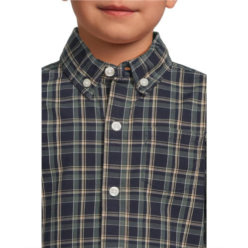 Let your little one exude a sleek and sophisticated style wearing the Janie and Jack Plaid Poplin Button Down Shirt. The button-down collar shirt features a full button-front closure, long sleeves with buttoned cuffs, a patch pocket at the left chest, an allover plaid print, and a curved hem.
