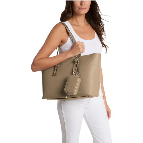 From running errands to the busy workday, keep your essentials organized in the MICHAEL Michael Kors Quinn Large East West Top Zip Tote. Crafted from leather, this tote offers a top zipper closure with adjustable shoulder straps and three interior slip pockets.