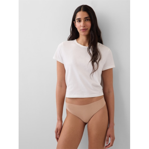 - Breathable, stretch cotton no-show thong underwear, now with no-show edge for no visible pant lines.