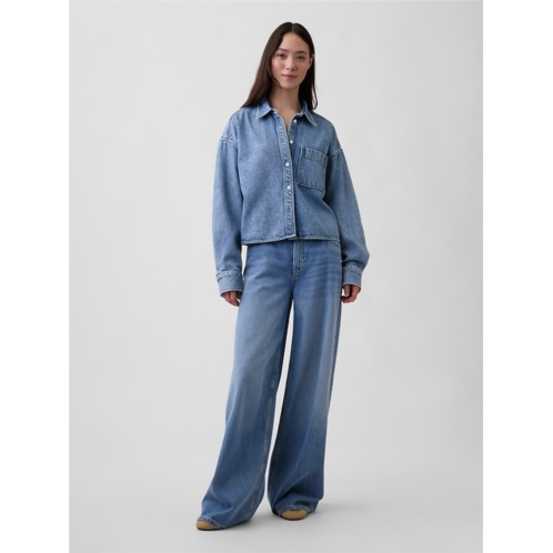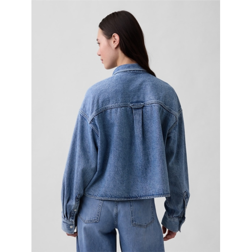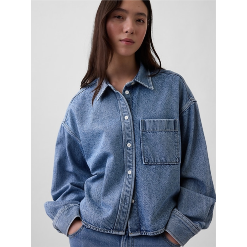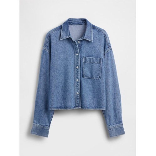 Gap UltraSoft Denim Oversized Straight-Hem Crop Shirt