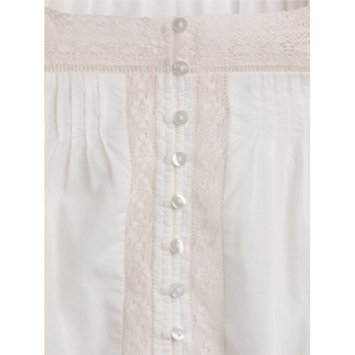 - Long sleeves with hidden snaps at shoulders to hold bra straps in place.