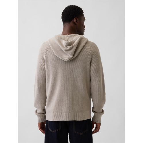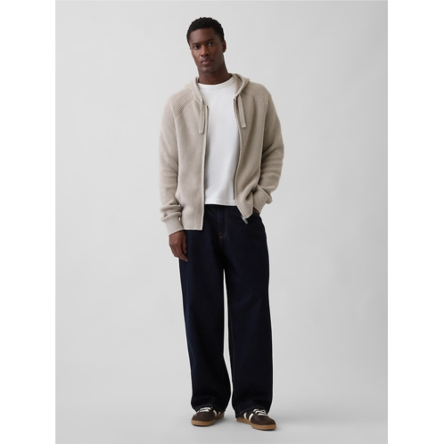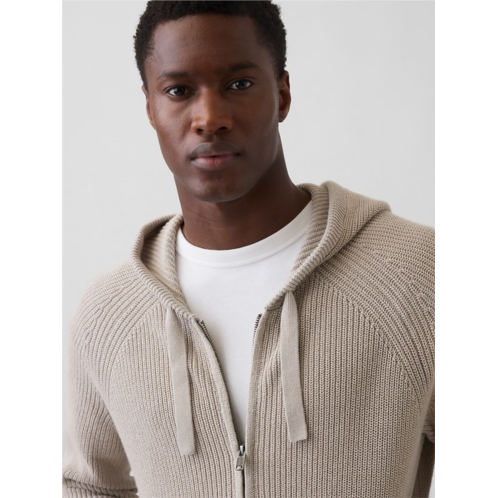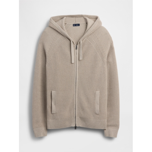 - Soft knit cotton full-zip hooded sweater. In a relaxed fit.