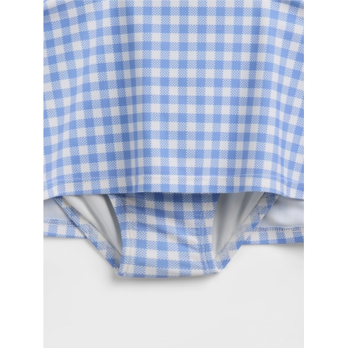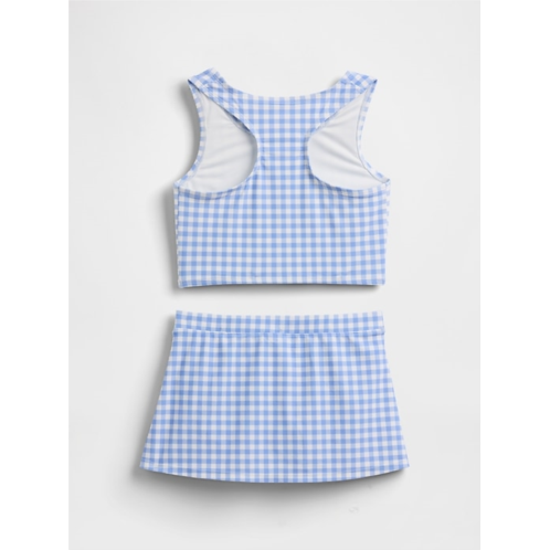 - Soft stretch active knit tankini and skort two-piece swim set.