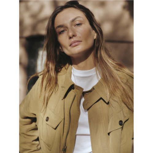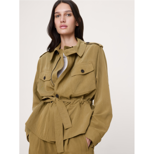 - A fresh take on the utilitarian styles from our archives, we cut this 2-pocket jacket from a viscose-nylon twill fabric we love because it's lightweight, yet dressed-up. Plus, we added a drawstring detail to cinch the waist.