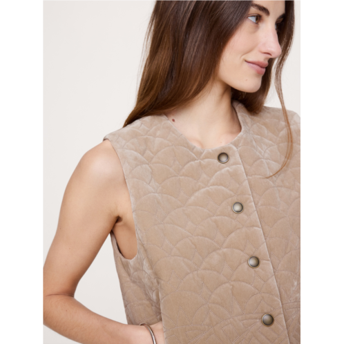 - Reach for this vest when you need a little extra luxury. Between the soft, velvet-flocked fabric and the intricate quilted pattern it's the perfect finishing touch for cooler seasons.