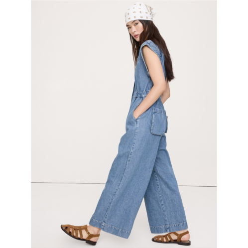 - A reimagined boilersuit in a lightweight denim with a touch of linen, just in time for warm weather. We kept the utilitarian feel sharp, sleeveless shoulders and a concealed zip front, but added a elastic to define the waist.