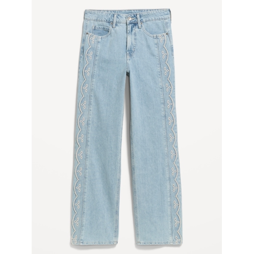 OldNavy Extra High-Waisted Embroidered Wide-Leg Jeans