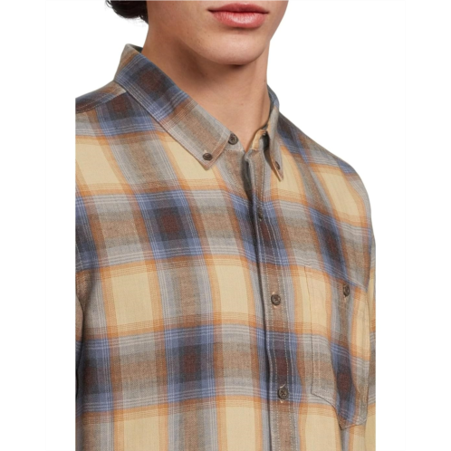 Plaid shirt in a lightweight, recycled cotton-poly fabrication flaunts a regular fit that's perfect for layering.