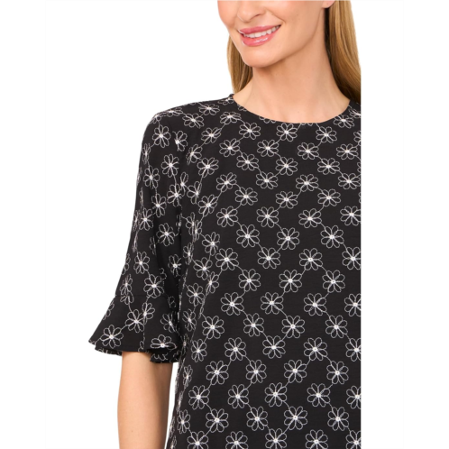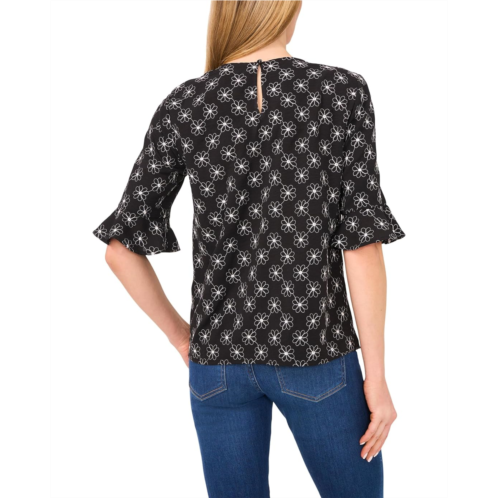 CeCe Ruffle Cuff Embroidered Crew Neck Top