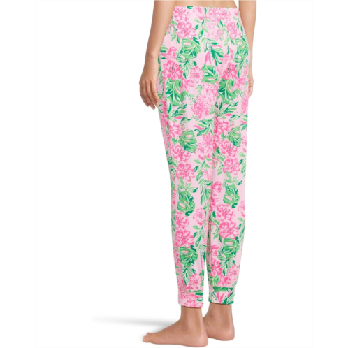 Dream in bloom: Luxe comfort, endless style in Lilly Pulitzer Jeffers PJ Pants, where classic fit meets a vibrant floral print. These mid-rise, slim-fit joggers feature a pull-on waistband with an adjustable drawstring for custom comfort. Cuffed leg openings add a stylish touch, while branded hardware lends a hint of sophistication. Perfect for lounging or catching up on beauty sleep, these PJ pants blend soft coziness with chic appeal.