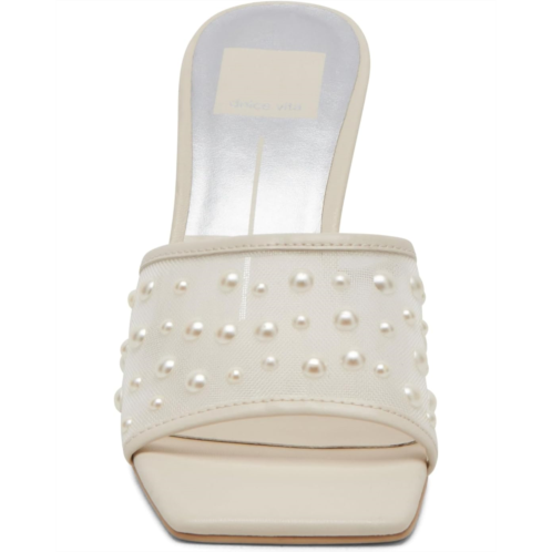 Strut in your classic yet enigmatic style wearing the Dolce Vita Narda Pearl Sandals. The slip-on footwear features mesh upper construction with pearl embellishments and high kitten heels.