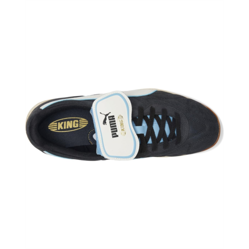 Embracing history to dominate the future, PUMA introduces the King Indoor Shoes soccer silhouette from their archives, fusing their iconic soccer heritage with contemporary street style. These shoes feature a durable leather base with embroidery stitching on the quarter panel for a stylish and high-quality finish. They showcase gold foil printed and debossed KING branding on the quarter panel, along with printed and embossed PUMA branding on the removable synthetic leather tongue flap. The polyester lining, EVA insole, and textile sockliner with sublimation print and KING gold foil print ensure comfort and a perfect fit. Made of a leather upper, these lace-up sneakers make a great addition to your footwear collection.