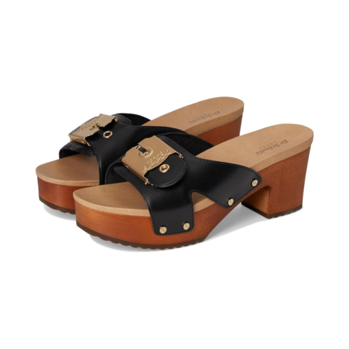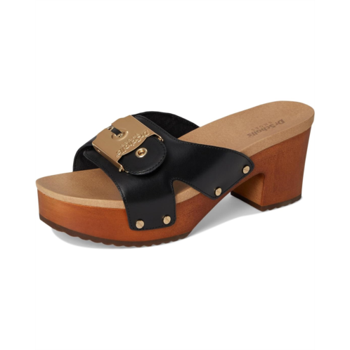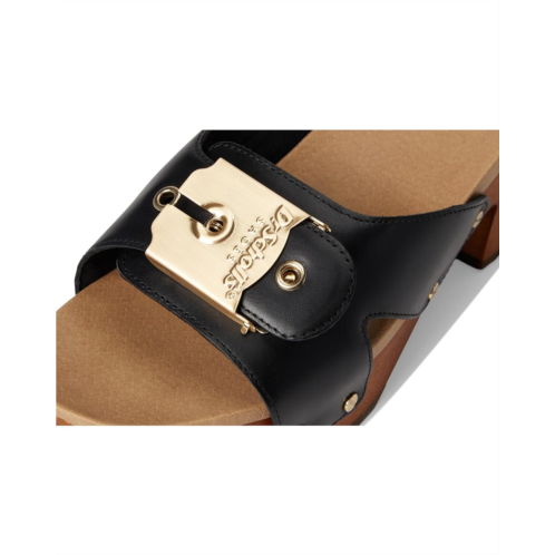 Introducing the Dr. Scholl's Original Max Too! Retro slides for women with a wooden clog heel and a thick molded footbed for extra comfort. Crafted with faux leather upper or Leather responsibly sourced through Leather Working Group-certified tanneries and linings partially made from recycled plastic bottles and artisanal wood sole made from natural beechwood certified by the Forest Stewardship Council. Vintage heeled clog sandal with oversized iconic Dr. Scholl's signature buckle, metallic stud details, open square toe, and platform heel. 1 SHOE. 1 TREE. ALL THE FEELS: With your purchase of this shoe, we'll donate one tree to Trees for the Future to offset carbon emissions and help impoverished families plant trees for a better life.