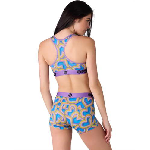 Crush your limits in ultimate comfort! The PSD Heart Attacks Sports Bra is designed for all-day confidence and high-performance support. Crafted with a soft microfiber blend band, this bra moves with you, delivering dynamic comfort and a secure fit. The full-coverage design and lined front ensure stability, while flatlock seams prevent chafing for a smooth feel. With a racerback silhouette and pull-on closure, it offers unrestricted movement and extra durability for intense workouts.