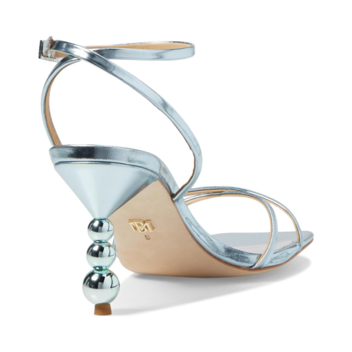 Step into elegance with Badgley Mischka Callie sandals. Featuring crisscross straps on the upper and an open square toe, they exude sophistication with a modern twist. The stiletto heel is adorned with metallic pearl detailing, adding a touch of glamor to any ensemble.