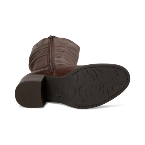 The Boern Harding knee-high tall boot is a classic boot in the high line collection. It has a clean western inspired toe, functional pull tabs, and an inside zipper for easy entry. It is crafted from leather upper, suede lining, and faux leather insoles. Featuring almond toe, and block heels for an elevated look.