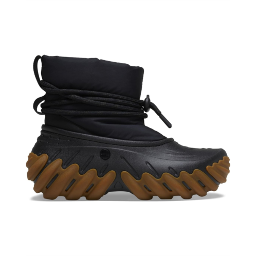 The Crocs Echo Boot puffy boot shaft has adjustable toggle lacing, democratic collar height, and an exaggerated rubber tread for additional traction. Fully molded Croslite and foundation iconic Crocs Comfort lightweight, flexible, and 360-degree comfort offers the perfect day outdoors. Textile, thermoplastic rubber, and polyurethane upper. The shoes have polyester lining and EVA footbed.