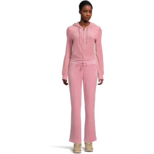 Juicy Couture Solid Rib Waist Velour Pants With Drawcord