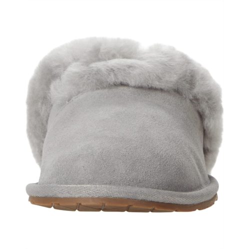 Lovely blend of shearling and faux-fur trim and footbed lining.
