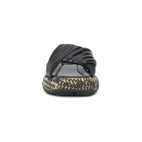 Step into effortless elegance with the Vince Camuto Luesda platform sandals, where artisanal craftsmanship meets contemporary flair. The leather upper, intricately stitched and knotted, offers a touch of refined artistry, while the platform wrapped in woven raffia exudes a laid-back, summery charm.