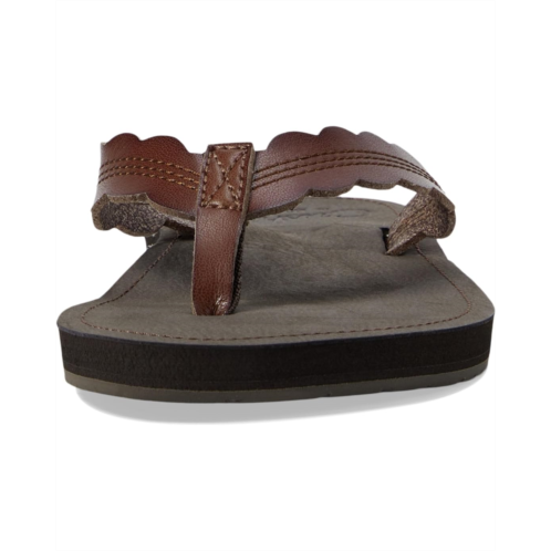 Raw edge scalloped vegan leather strap for long-lasting wear.