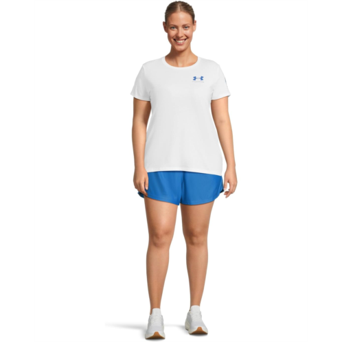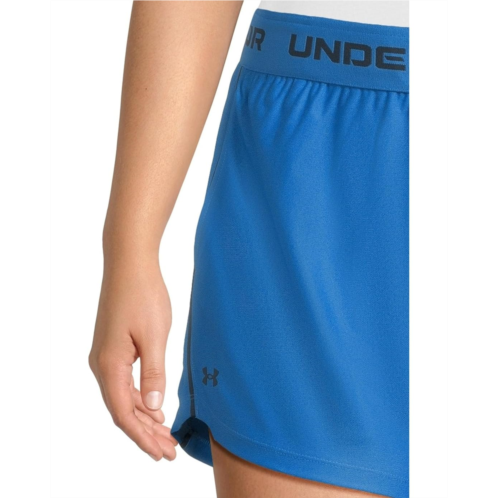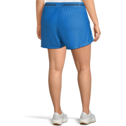 Enjoy every game you play feeling comfortable and chic in the Under Armour Plus Tech Play Up Shorts. The pull-on style shorts are crafted with an encased mid-rise waistband with signature Under Armour branding and a short length silhouette with curved hems and a brand logo detail at the front.