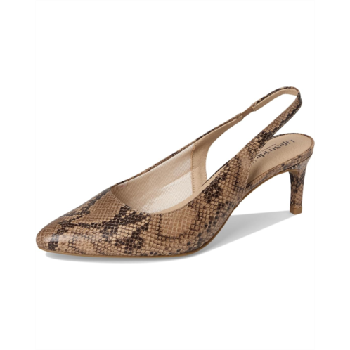 The LifeStride Annalise Slingback Shoes are where timeless elegance meets everyday wearability. Featuring a synthetic resin or microfiber upper with a softly pointed toe, this classic silhouette gets a modern upgrade with a sleek stiletto heel and a slip-on slingback strap designed with stretch for the perfect fit. Lined in partially recycled faux leather and cushioned with a PU insole, these heels bring sustainability into the spotlight. The Soft System comfort package delivers next-level support, flex, and all-day cushioning, while a synthetic rubber outsole offers reliable traction for stability with every step.