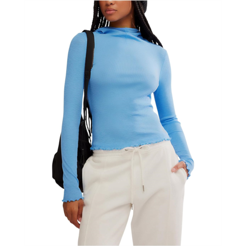 TheFP MovementBreathe Easy Long Sleeve is a lightweight, laid-back essential designed for movement and chic style. It features a relaxed fit, funnel neckline, and pullover hood for cozy layering. Scalloped trim and the ultra-light fabrication makes it perfect for post-workout cooldowns.