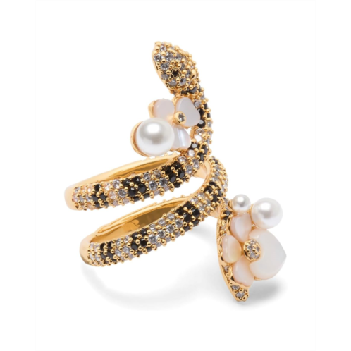 The Kate Spade New York Shining Snake Statement Wrap Ring comes with cubic zirconia, mother-of-pearl, glass pearl, and acrylic pearl embellishments. The wrap style ensures a comfortable fit, while the intricate adornments add a touch of sophistication and sparkle.