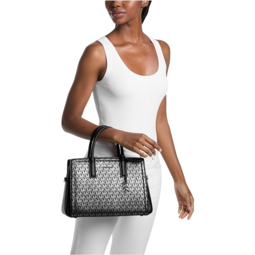 Looking for a chic and practical handbag? Look no further than the MICHAEL Michael Kors Laila Medium Satchel. Made from high-quality solid embossed goat leather, this satchel is both stylish and tough. The removable and adjustable crossbody strap allows for easy customization, while the two shoulder straps provide extra comfort. Keep your belongings safe and organized with the zippered closure and dual compartments. And don't forget about the removable MK logo charm, adding a signature touch to your outfit.