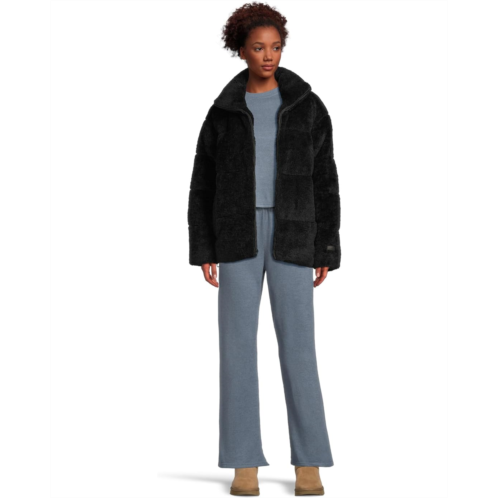 Snuggle season goals: The UGG Emmalyn Uggfluff Puffer Jacket. Designed with a stylish stand collar and long sleeves, it's built to keep you warm. The full zippered front closure features a quality Vislon zipper with the signature UGG logo pull for easy wear. Keep your hands warm in the side welt hand pockets, complete with soft fleece linings. Tailor the fit with the bungee drawcord at the hem, finished with UGG logo metal cord stoppers. Complete with a subtle UGG leather label on the cuff, this jacket seamlessly fuses high-end warmth and iconic style.