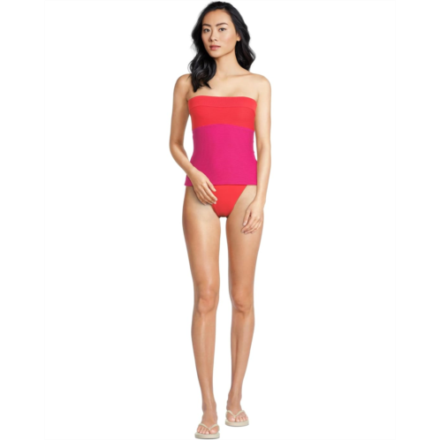 Make a statement at the pool wearing the Tommy Bahama Ocean Point Color-block Bandini. Crafted with textural ottoman rib details and a trendy color-block design, this bandeau neckline top is both fashionable and functional. The removable straps allow for versatile styling options, while the back hook closure ensures a perfect fit every time.