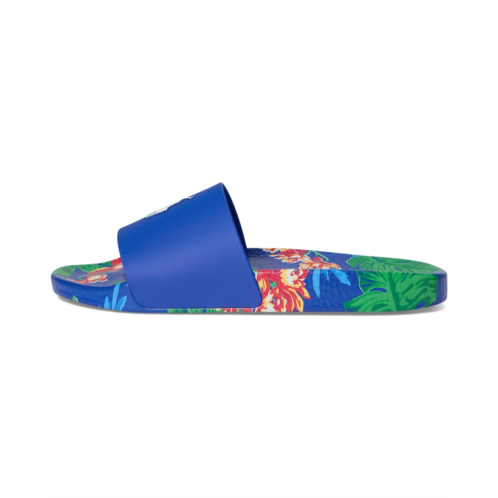 Comfort with a classic twist, Polo Ralph Lauren Floral-print Slide. Crafted with a smooth PU upper and adorned with a vibrant floral print, this slide brings instant charm to your warm-weather wardrobe. The single-strap silhouette offers clean, modern appeal, while the open-toe design lets your feet breathe with ease. Inside, cushy EVA lining, insole, and outsole deliver lightweight comfort that keeps you moving effortlessly from morning strolls to weekend lounging. With its easy slip-on profile, this slide makes getting ready a breeze, offering grab-and-go convenience without sacrificing style.