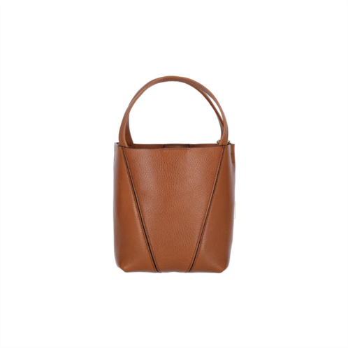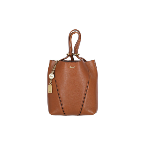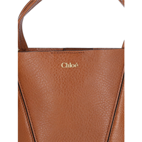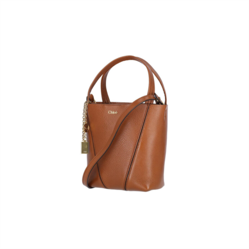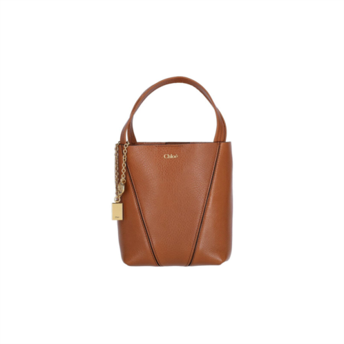 Chloe Ladies Tote. SKU: 25SS812N8426M. Color: Brown. Size: A 18 X L 19 X P 8 cm. Chloe Small Tote Bag Spin. Chloe 'Spin' small tote bag in brown hammered leather with two adjustable handles with gold metal ring, adjustable and removable shoulder strap, magnetic closure, gold metal pendant charm on the front, gold logo print on the front, single inner compartment. Composition: 100% Calf Leather