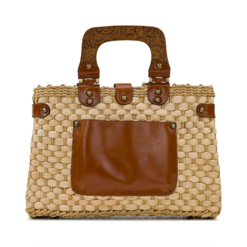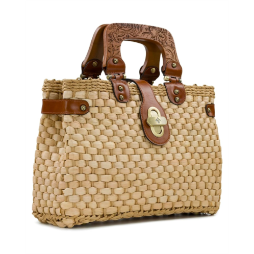 - A gorgeous weave, wood handles, and supple leather trim make the Patricia Nash Sancia Satchel a bag you'll carry often. Reminiscent of the gorgeous picnic basket bags of the 1950s, you'll feel like Grace Kelly with the Sancia. Crafted from straw and full-grain leather trim, the bag features a twist-lock closure, two grab handles, and removable and adjustable crossbody strap. The satchel also features signature brushed brass hardware and heavy handcrafted stitching.