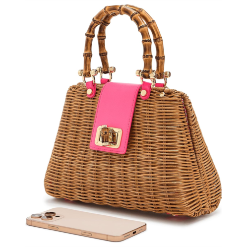 - The Lilly Pulitzer Leena Top Handle Bag is a wicker bag with a natural bamboo top handle, printed interior lining, and a natural bamboo turn-lock closure. The gold metal chain crossbody strap of the handbag makes it convenient to carry around. This hand purse features a compact shape and size, making it a great choice to pair with different outfits and styles.