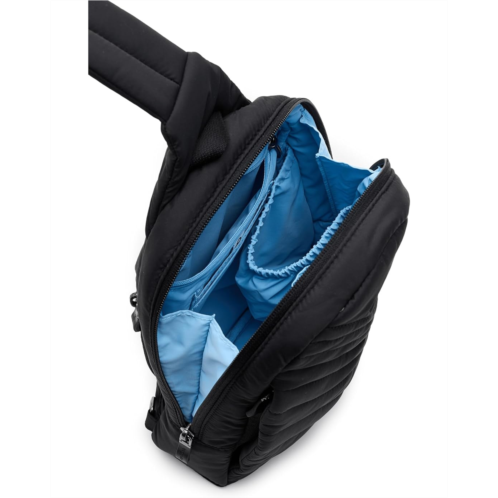 - Lightweight and endlessly versatile, the Baggallini Set Wave Sling is made to keep up with wherever the day takes you. A beautiful quilted design meets smart storage, with discreet details like a hidden phone pocket and an interior water bottle sleeve that make staying organized second nature. Perfect for travel, fitness, or weekends on the go, it's the definition of style in motion. This bag features padded shoulder strap, hidden loop hook, two exterior zippered pockets, three RFID-protected card slots, key leash, privacy pocket, and penholder.