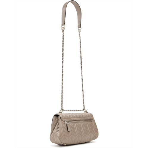 게스 - The GUESS Cheryl Convertible Crossbody Flap pairs a sleek design with smart storage, making it as practical as it is stylish. An ideal companion for women on the move. Crafted from polyurethane, this bag features chain link detailing crossbody strap, magnetic snap closure, gold-tone exterior hardware, one interior zippered pocket, feet, six interior credit card slots, and one exterior back zippered pocket.