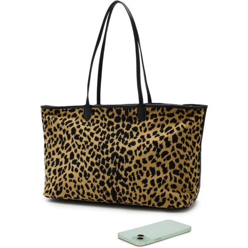 레베카밍코프 - Go bold, carrying the Rebecca Minkoff On The Move Tote. Designed in leopard-print velvet with sleek dark-colored shellac accents, this roomy cotton bag adds instant statement energy to your everyday. Dual slim top handles make it easy to carry, while the zippered top closure and interior slip pocket keep your essentials secure and within reach.