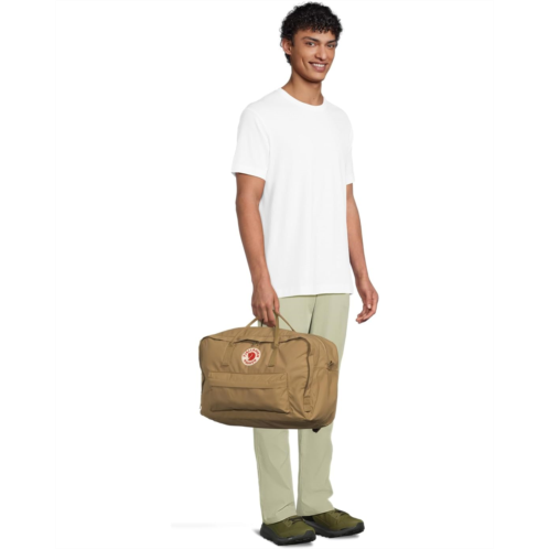 - This Fjallraven Kanken Weekender is the perfect com-panion for those who need some extra room in their bag for a weekend away. Inspired by the classic duffel bag, the kanken Weekendercan be carried in three ways: as a simple hold-all, a crossbodybag, or as a backpack by turning it on its side and using the padded shoulder straps. It stays true tokanken's iconic design with its heavy-duty handles, zippered front pocket and hardwearing Vinylon fabric. But the Weekender takes kanken to new heights with its spacious main compartment and afront compartment that expands or collapses depending on your packing requirements - use it forshoes, a towel or to keep laundry separate from the main compartment. Set to last for many week-end getaways in the years to come.