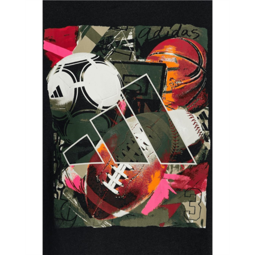 아디다스 - The adidas Kids Multi Sport Collage Tee brings athletic energy to casual wear with a bold, sport-inspired graphic design. Styled with a classic crew neckline, short sleeves, and a straight hem, it offers a timeless fit that's easy to layer or wear on its own.